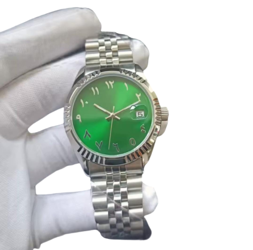 ساعة يد رجالية أنيقة باللون الأزرق، مزودة بأرقام عربية واضحة وآلية ميكانيكية دقيقة. تتميز بتصميم عصري وسوار مريح، إضافةً إلى مقاومتها للماء، لتكون خياراً عملياً وأنيقاً للاستخدام اليومي.