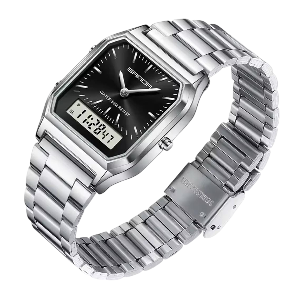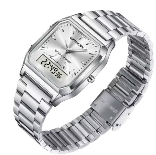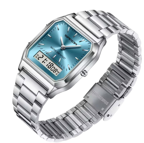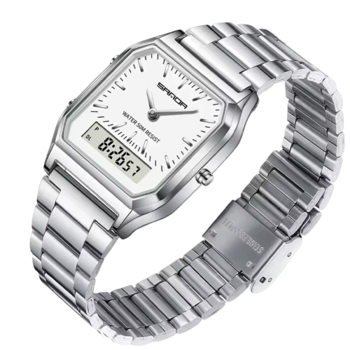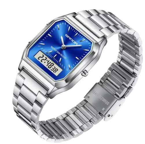 ساعة SANDA الرجالية الفاخرة – عرض رقمي مزدوج ومقاومة للماء